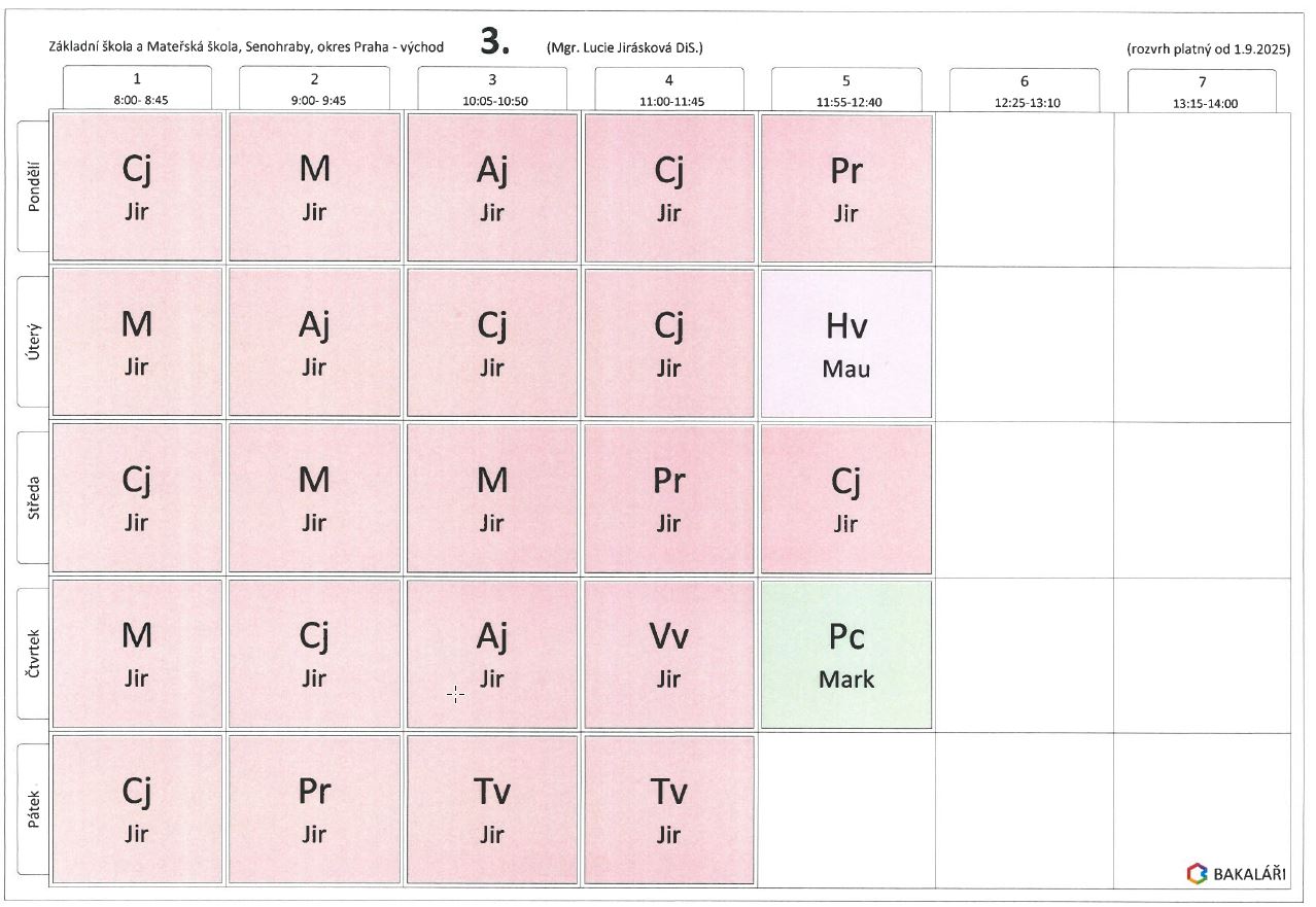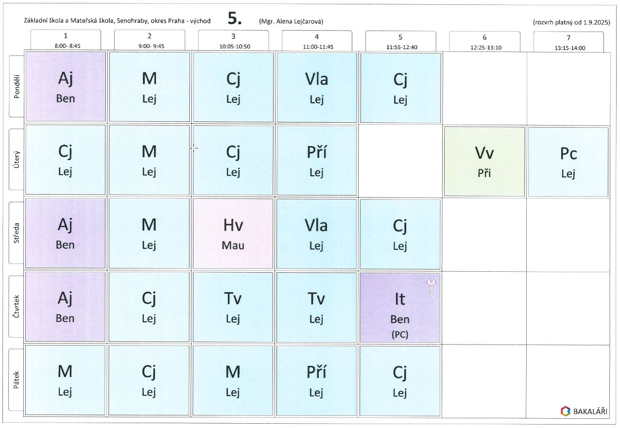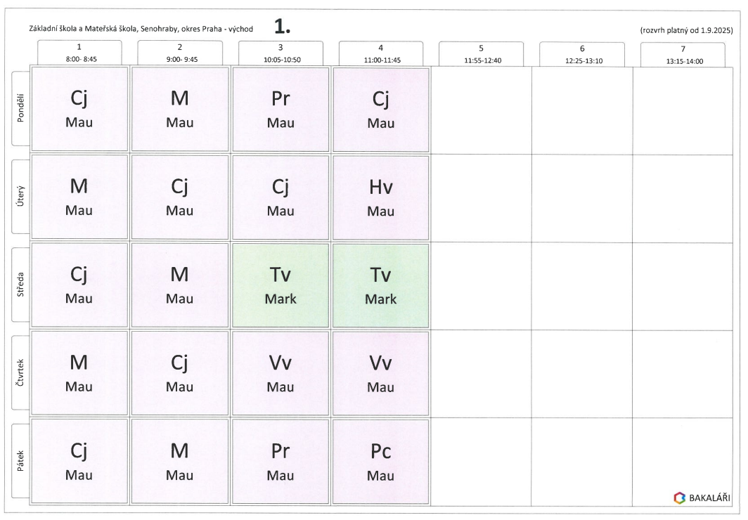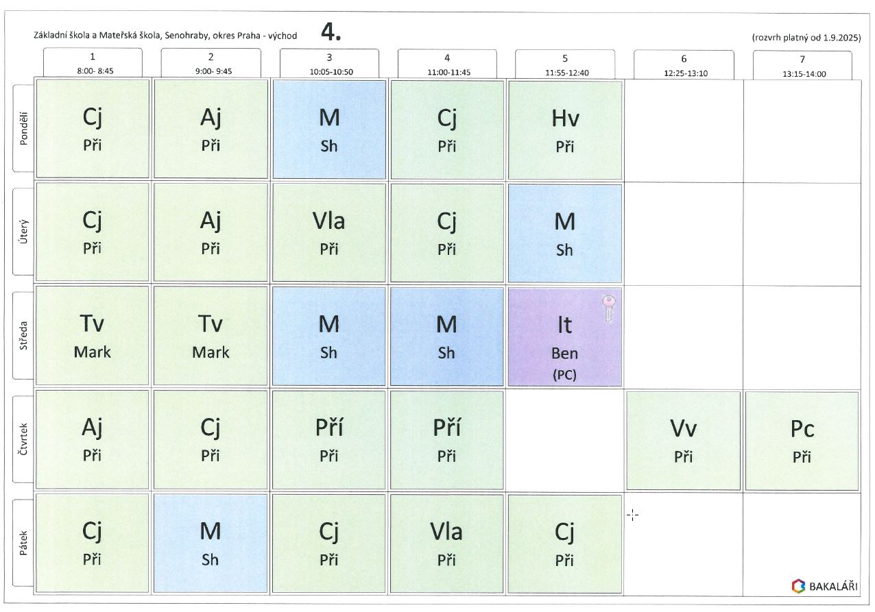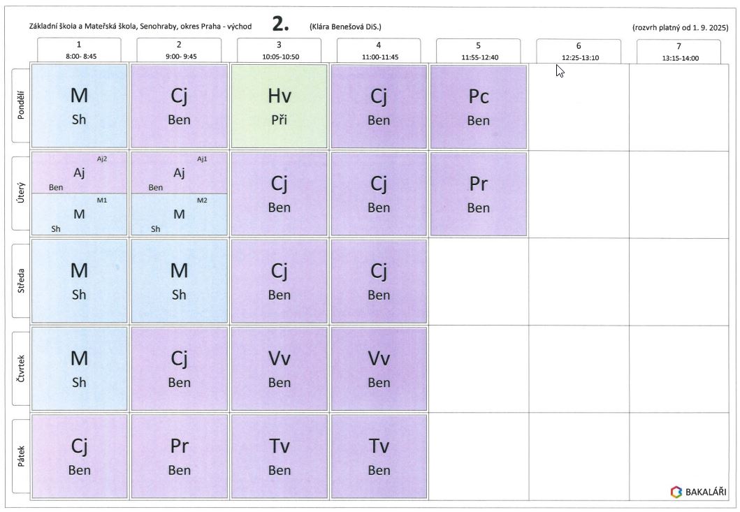 Aktuální rozvrhy hodin – školní rok 2025/2026, pro jednotlivé ročníky naleznete zde: Rozvrhy 2025-2026